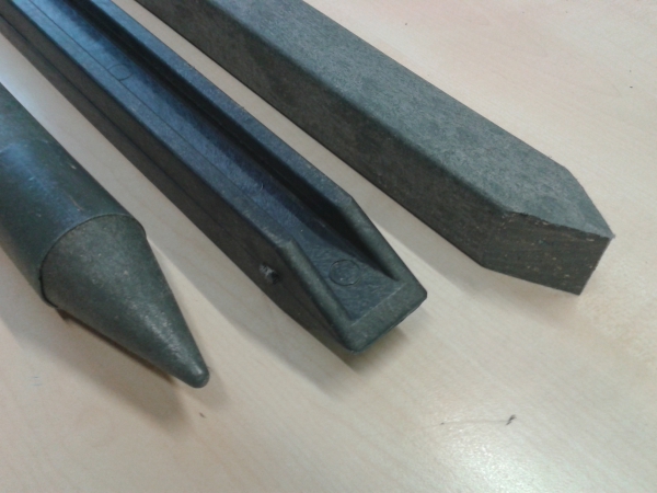 Die Pfähle bestehen aus glasfaserverstärktem, schlag- und trittfestem, verrottungsbeständigem Recycling-Kunststoff.