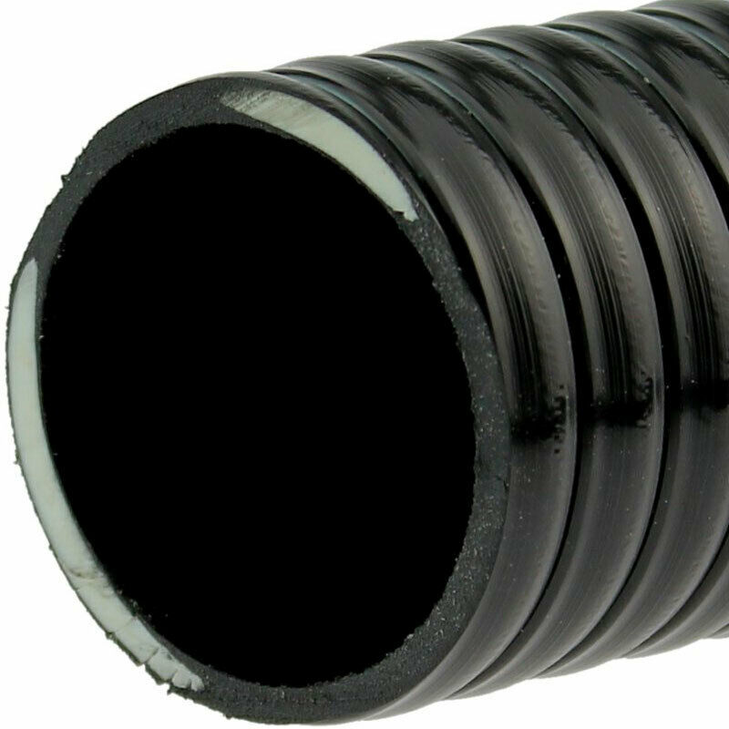 - starke Vollmantelwandung aus Weich-PVC, Farbe Schwarz mit weißer Kunststoff Spirale verstärkt