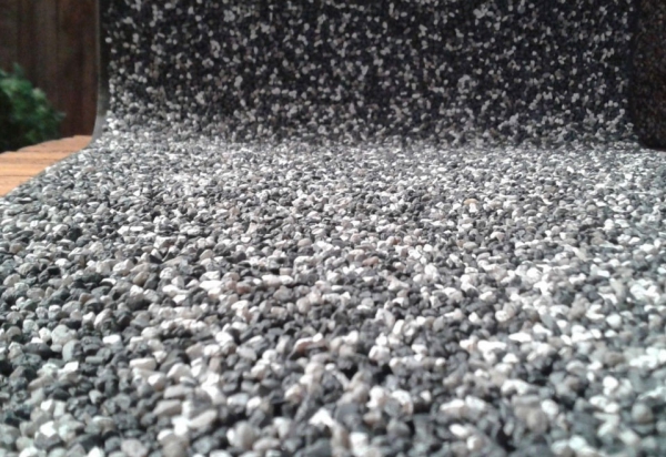 Die Steinfolie ist mit einer Körnung von 2- 3 mm Steinen beschichtet. Das ganze ist in einem speziellen Verfahren auf ein Vliesträgermaterial fixiert worden. Dadurch ist die Steinfolie sehr flexibel in der weiteren Verarbeitung.