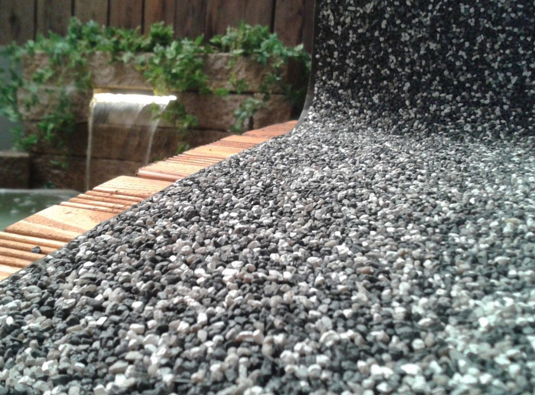 Die Steinfolie ist mit einer Körnung von 2- 3 mm Steinen beschichtet. Das ganze ist in einem speziellen Verfahren auf ein Vliesträgermaterial fixiert worden. Dadurch ist die Steinfolie sehr flexibel in der weiteren Verarbeitung.