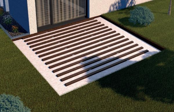 Die Unterkonstruktion bildet die stabile Basis der Terrasse. Sie sorgt für eine ebene, tragfähige Fläche und gleicht Materialbewegungen aus. Am besten wird sie aus dem gleichen Recyclingkunststoff wie die Dielen gefertigt, damit sich alles gleichmäßig bei Temperaturwechsel ausdehnen kann.